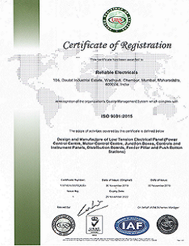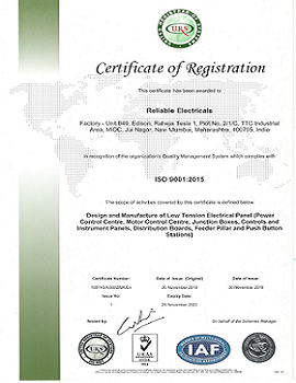 Reliable Electricals is a leading and reputed manufacturing company, Established in 1984, Reliable Electricals is a Mumbai Maharashtra, India based LT Electrical Panel manufacturing company, with ISO 9001: 2015 certification. We are Manufacturers of LT Electrical panels (PCC/MCC, Junction Boxes, Control & Instruments Panels, Distribution Boards, Feeder Pillars and Push Button Stations) Know More About Us